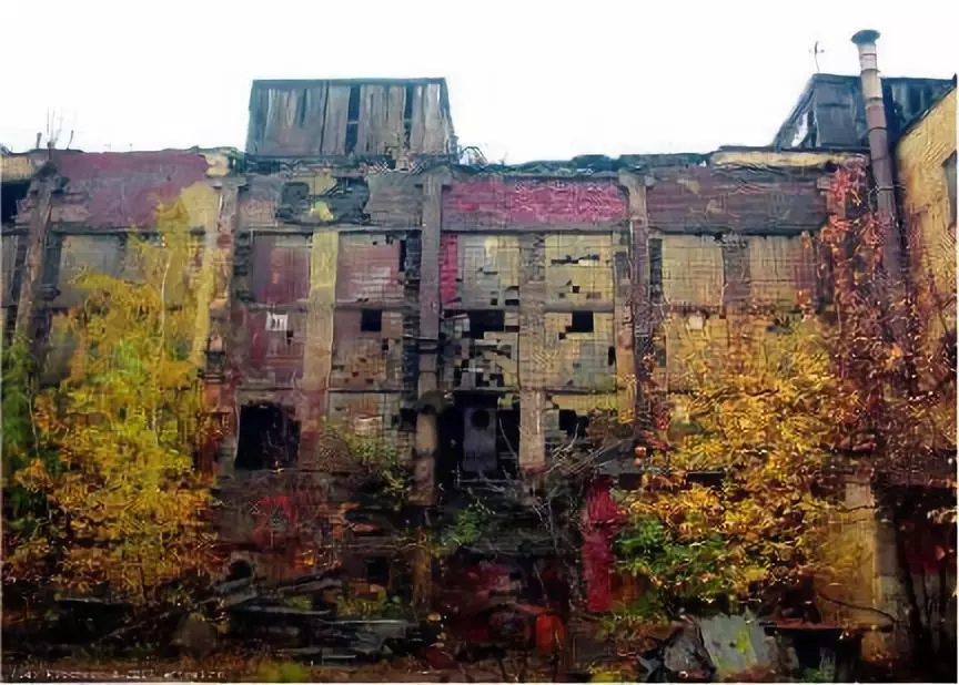 工厂和居民区残破不堪。墙面剥落,墙缝开裂了,漏出了方砖。墙上的玻璃早就碎了不知多久,只剩下了黑漆漆的锈蚀的骨架。