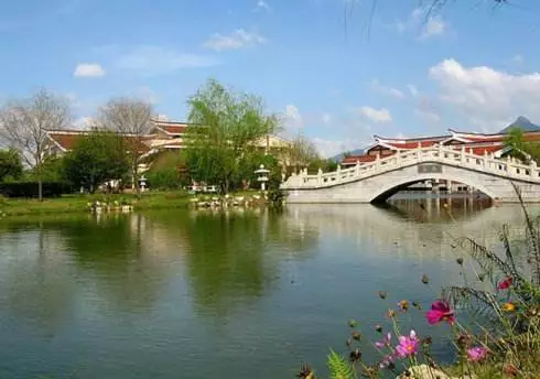 碧水含烟花满树,君邀吾乃赏奇葩。