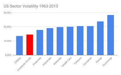 从1963年到2013年,消费股的收益率最高,波动性也几乎最低。