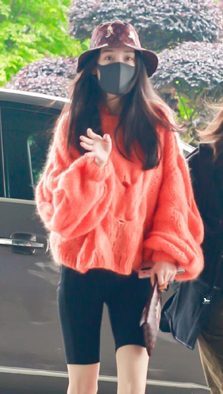这件橘红色宽松毛衣也是非常好看,夸张的泡泡袖设计休闲甜美,毛衣的镂空设计也非常精致。这种少人尝试的橘红色搭上黑色还是非常吸精的,看上去非常高级有范,减龄又少女。不得不说杨幂真的很有品味。