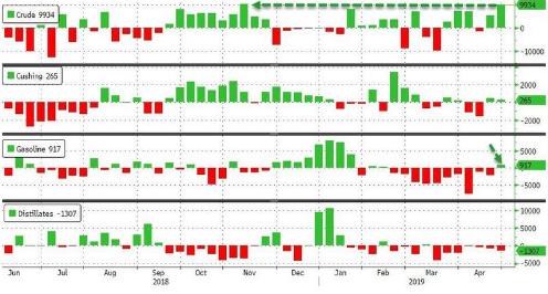 EIA公布,截至4月26日当周,美国原油库存增加993.4万桶至4.706亿桶,创2018年11月16日当周(24周)以来最大增幅,且升至2017年9月以来最高水平,市场预估为增加148.5万桶。