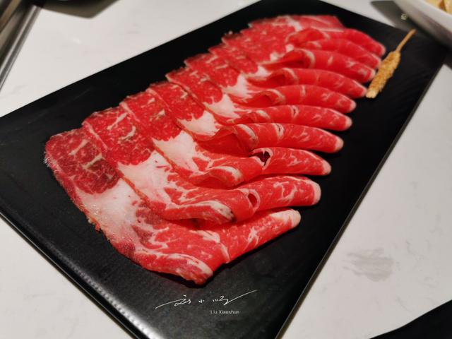 他们家的配菜品种十分丰富,最有代表性的就是“美国雪花牛肉”,肥瘦相间,恰到好处,再加上切得特别薄,下锅烫几秒钟就能吃,既嫩滑又很有嚼劲,名不虚传。