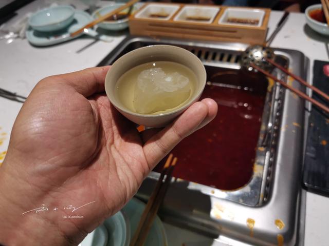 在大家最后酒足饭饱之后,店家还会特地为每个人送上一杯特制的“牡丹茶”,茶汤中漂着牡丹花瓣,清爽解腻,吃完火锅之后喝一杯实在恰到好处,也算是有始有终,呼应了“牡丹火锅”的店名。