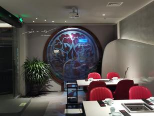 另外,据说“牡丹火锅”的装修灵感同样来自于“牡丹”,店内卡座的隔断挡板都做成“牡丹”花瓣的形状。在圆形的窗玻璃上,也用特殊科技做出了牡丹盛开的轮播动画。