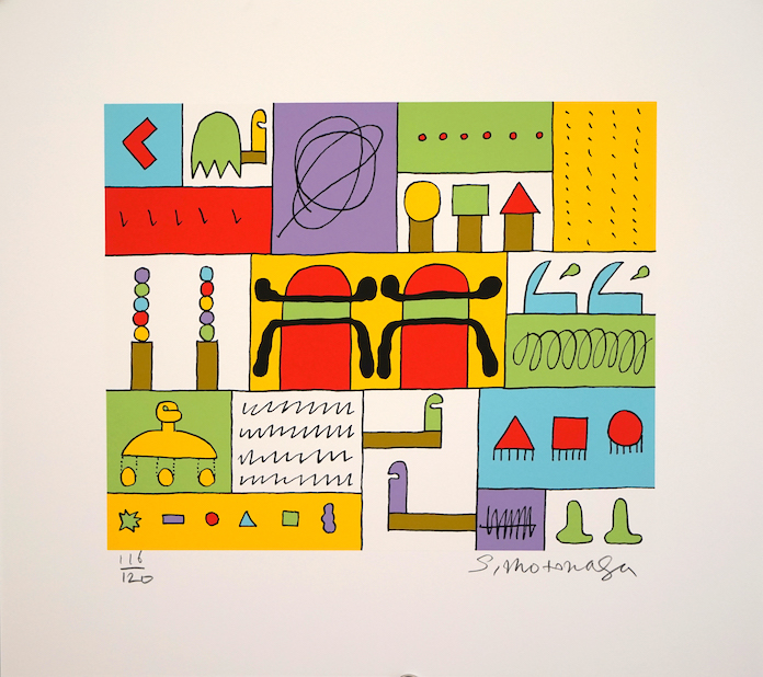 元永定正是日本抽象艺术家、具体派早期成员。在创作早期,元永定正受到二十世纪初日本官方画苑艺术家滨边万吉的影响,开始接触油画,专门研究人体与风景。1955年他受吉原的邀请加入了具体派艺术协会。随后他一直活跃在现代艺术的国际领域。应日本学会邀请,元永于1966年至1967年间赴纽约交流,他受到日本传统绘画中“滴流式技法”的启发,尝试以不规则掉落颜料的形式进行创作。回到日本后,他还开发了一种使用喷枪喷绘丙烯颜料的技术。这种新技术在1970年间引领了一种更加奇特而强烈的幽默风格,元永定正将这种幽默风格称为“傻瓜派”,把自己的作品叫做“滑稽艺术”。