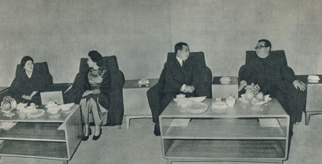西哈努克亲王在金日成陪同下参观了朝鲜艺术电影制片厂。