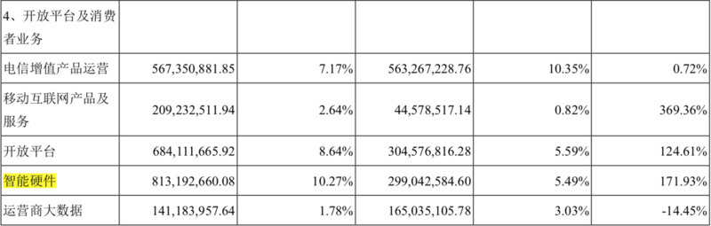 科大讯飞 2018年年报中的智能硬件营收占比。