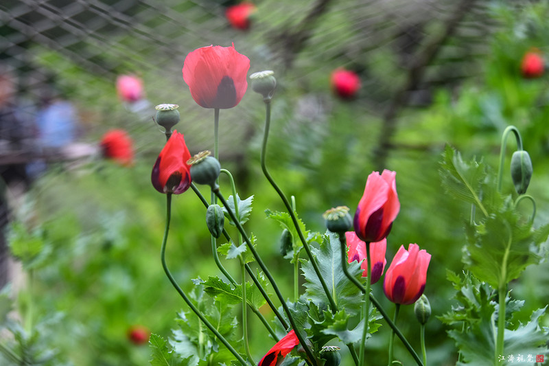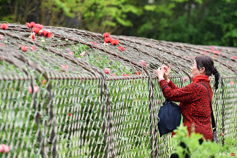 铁笼外面种植着虞美人,方便游客将两者对比观赏,又形成隔离带,以防游客伸手采摘罂粟。