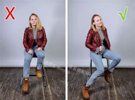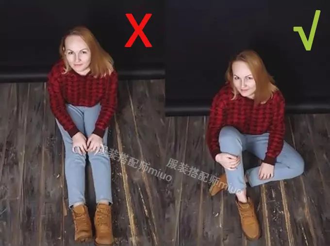 ★拍坐姿时,正对着镜头可能会拍成“霍比特人”。侧身,一腿弯曲并稍稍伸向镜头,会很有范。