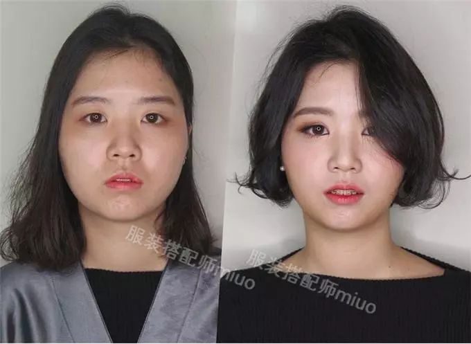 另外,长发披肩的同学,头发不要遮脸颊、头发不要遮脸颊、头发不要遮脸颊!这一点其实和穿搭显瘦是一个道理。头发挡脸颊、就会显脖子粗短、就会显胖/壮。