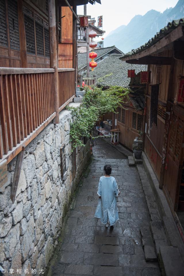 走在古镇里,会发现有很多的花和很多的树。其中最多的是椿树、梓树,这是因为“椿”谐音春天的春,梓谐音子有吉祥的意思,也代表了,春常在子孙旺。所以,土家人喜欢栽种椿树、梓树。而且,土家吊脚楼使用的木料最多的就是这两种树。