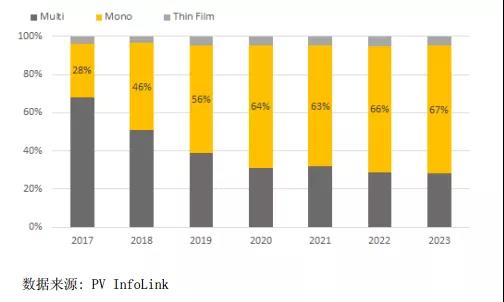 截至2018年底,隆基股份硅片产能28GW,在全球单晶产能中的占比超过40%,是名副其实的行业龙头。此刻,对于隆基股份的领导,我们只有羡慕与敬佩——能提前布局高效单晶产能,抢占先机,这本身就需要非凡的智慧。
